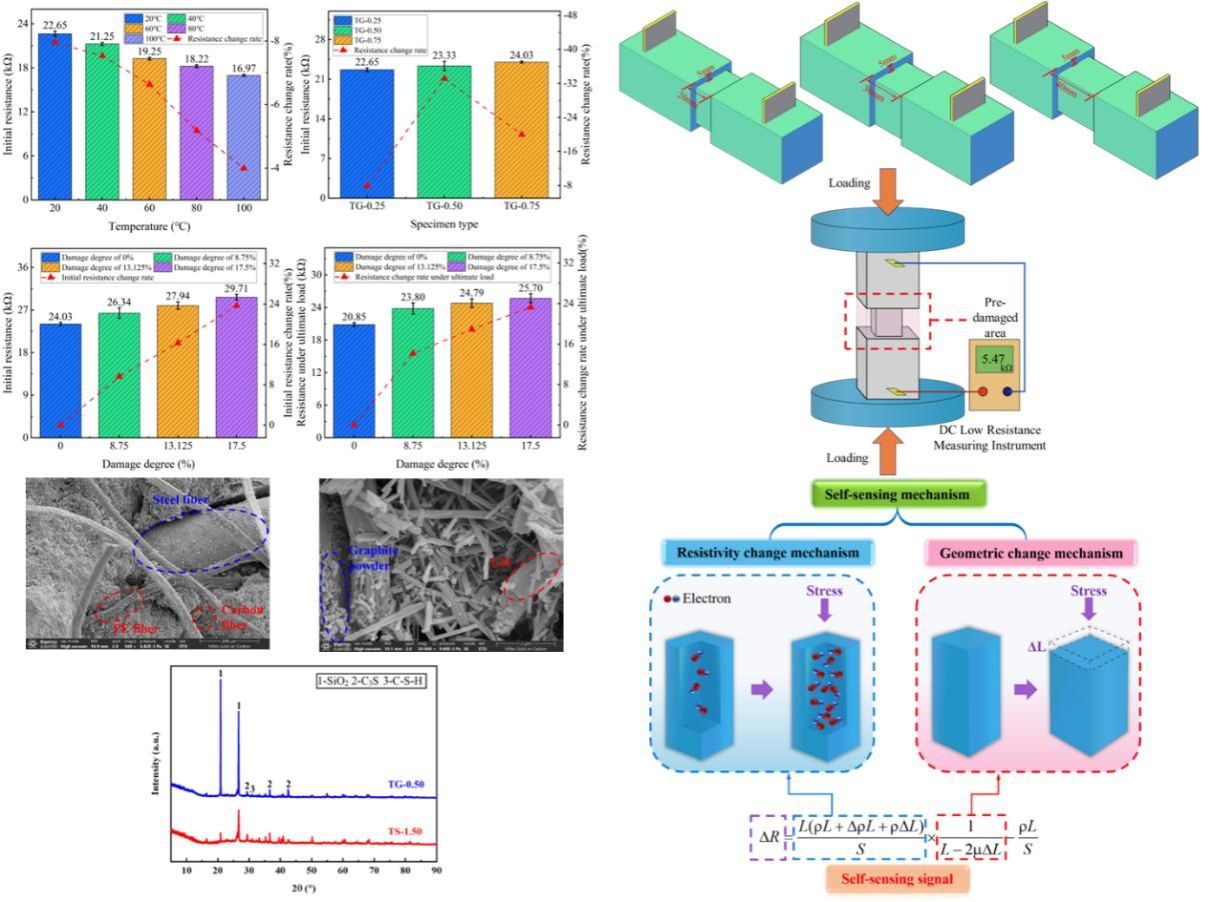 近日,田俊特聘教授、郑愚副校长、袁锦昀院士等人在工程技术领域TOP期刊《Construction and Building Materials》发表了题为Study on the comprehensive performances of self-sensing ECC under coupling effect of temperature and load: Microscopic characterization, self-sensing performance, damage self-sensing theoretical model的研究论文。我校田俊特聘教授为论文的第一作者,硕士研究生章思宇为论文的第二作者,东莞理工学院为论文第一完成单位和通讯单位。