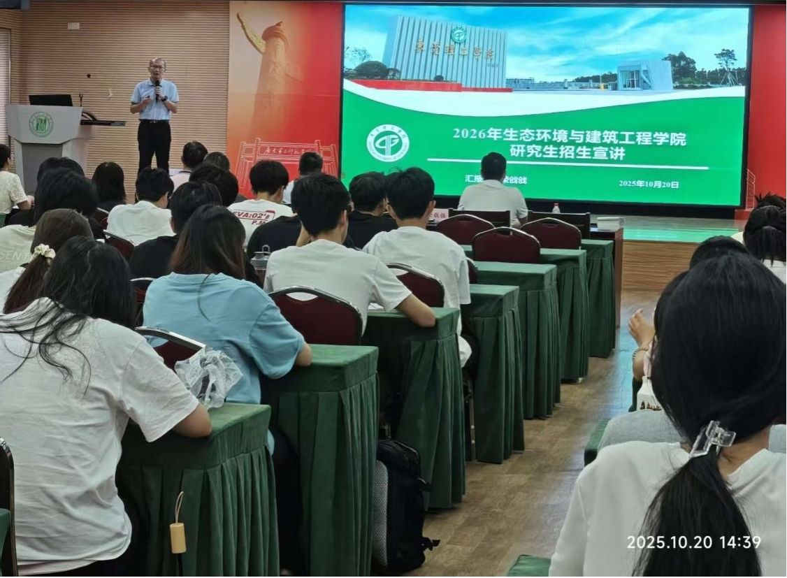 随后,荣戗戗副院长在生物与食品工程学院报告厅为师生作了题为“2026年生态环境与建筑工程学院研究生招生宣讲”的专题报告。宣讲重点介绍了学院环境工程、土木工程、土木水利等学位点的培养特色与招生政策,并鼓励学生积极报考。